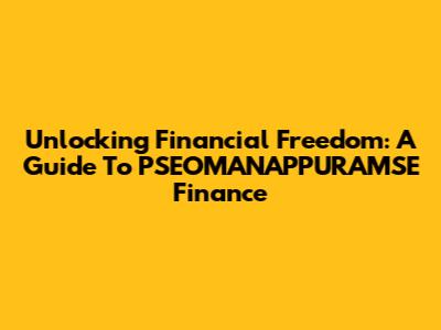 Unlocking Financial Freedom: A Guide To PSEOMANAPPURAMSE Finance
