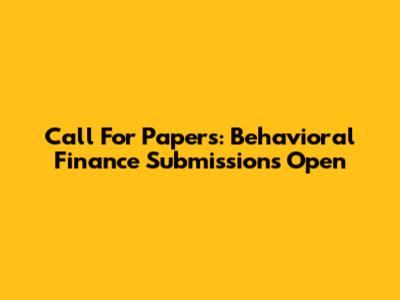 Call For Papers: Behavioral Finance Submissions Open