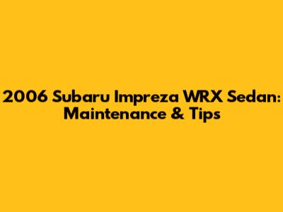2006 Subaru Impreza WRX Sedan: Maintenance & Tips