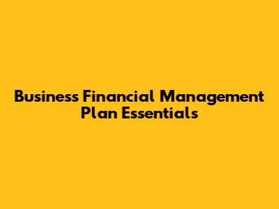 Business Financial Management Plan Essentials