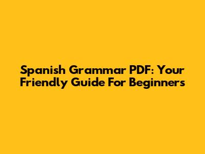Spanish Grammar PDF: Your Friendly Guide For Beginners
