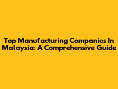 Top Manufacturing Companies In Malaysia: A Comprehensive Guide