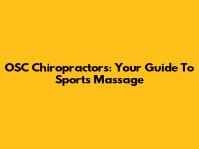 OSC Chiropractors: Your Guide To Sports Massage