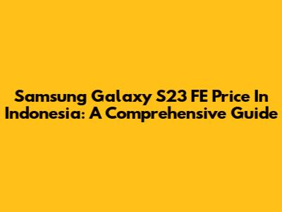 Samsung Galaxy S23 FE Price In Indonesia: A Comprehensive Guide