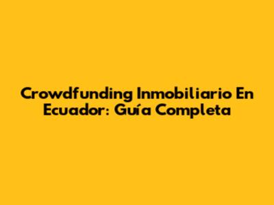 Crowdfunding Inmobiliario En Ecuador: Guía Completa
