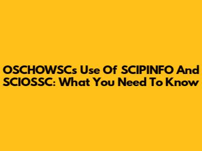 OSCHOWSC's Use Of SCIPINFO And SCIOSSC: What You Need To Know