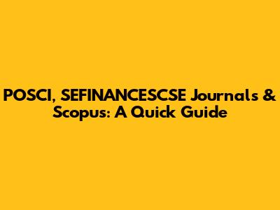 POSCI, SEFINANCESCSE Journals & Scopus: A Quick Guide