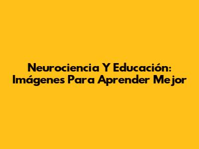 Neurociencia Y Educación: Imágenes Para Aprender Mejor