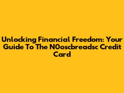 Unlocking Financial Freedom: Your Guide To The N0oscbreadsc Credit Card