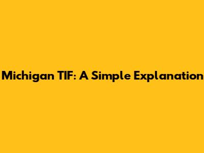 Michigan TIF: A Simple Explanation