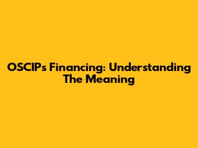 OSCIPs Financing: Understanding The Meaning