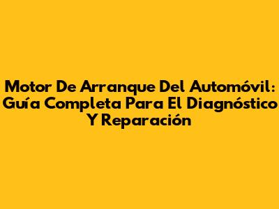 Motor De Arranque Del Automóvil: Guía Completa Para El Diagnóstico Y Reparación