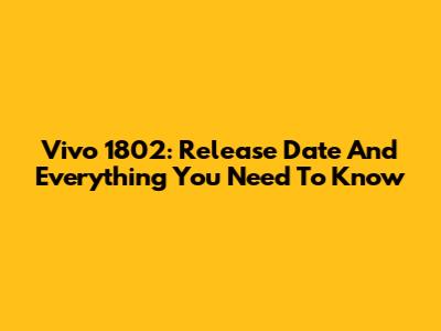 Vivo 1802: Release Date And Everything You Need To Know