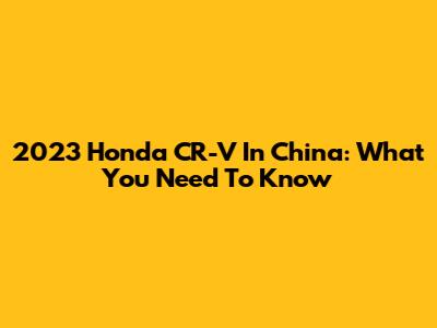 2023 Honda CR-V In China: What You Need To Know