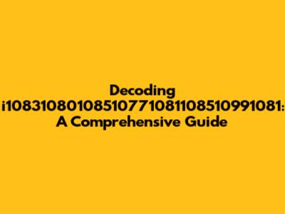 Navigating the digital world often involves encountering seemingly random strings of characters. Today, we're diving deep into understanding one such string: i10831080108510771081108510991081. This comprehensive guide will break down what this alphanumeric sequence might represent, its potential origins, and how to approach decoding similar strings you might encounter online. Whether you're a seasoned tech enthusiast or just starting to explore the intricacies of the internet, this article will equip you with the knowledge to decipher these cryptic codes. So, let's embark on this journey together and unravel the mystery behind i10831080108510771081108510991081!