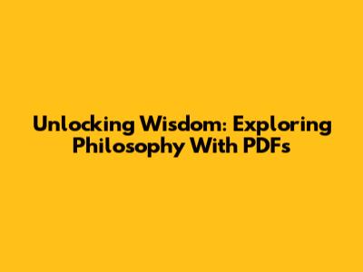 Unlocking Wisdom: Exploring Philosophy With PDFs