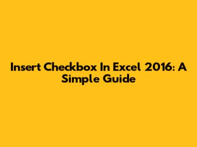 Insert Checkbox In Excel 2016: A Simple Guide