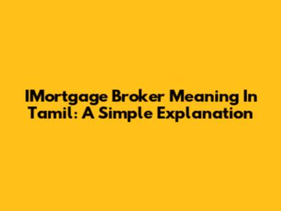 IMortgage Broker Meaning In Tamil: A Simple Explanation