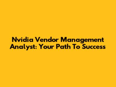Nvidia Vendor Management Analyst: Your Path To Success