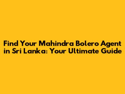 Hey guys! Are you in Sri Lanka and on the hunt for a tough, reliable vehicle? The Mahindra Bolero might just be the perfect fit for you. It's a workhorse known for its durability and ability to handle various terrains. But where do you even start looking for one? Finding a trusted Mahindra Bolero agent in Sri Lanka is the key to a smooth buying experience. This guide will walk you through everything you need to know, from spotting authorized dealers to understanding the services they offer. So, buckle up, and let’s dive in!