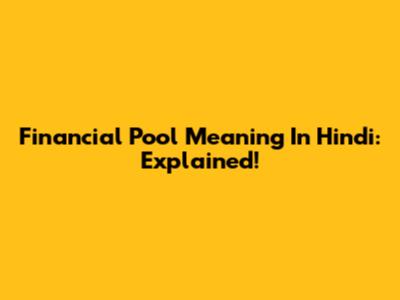 Financial Pool Meaning In Hindi: Explained!