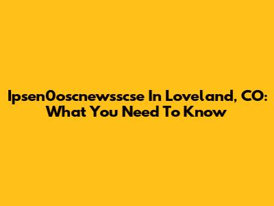Ipsen0oscnewsscse In Loveland, CO: What You Need To Know