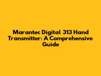 Marantec Digital 313 Hand Transmitter: A Comprehensive Guide