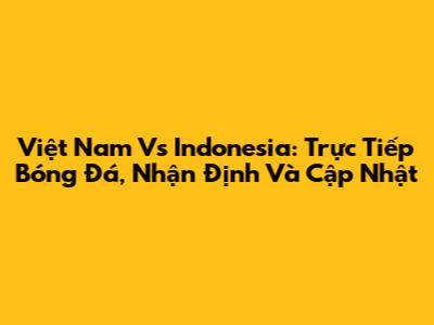 Việt Nam Vs Indonesia: Trực Tiếp Bóng Đá, Nhận Định Và Cập Nhật