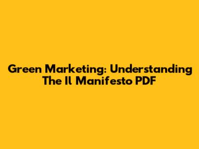 Green Marketing: Understanding The Il Manifesto PDF