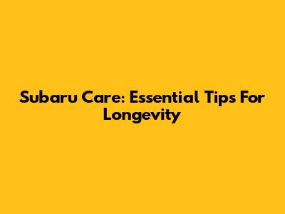 Subaru Care: Essential Tips For Longevity