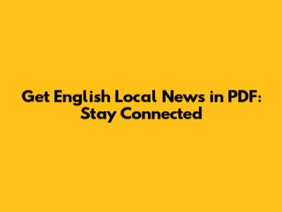 Diving Into English Local News PDFs: Your Ultimate Connection