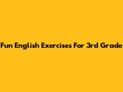 Fun English Exercises For 3rd Grade