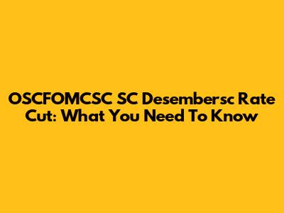 OSCFOMCSC SC Desembersc Rate Cut: What You Need To Know