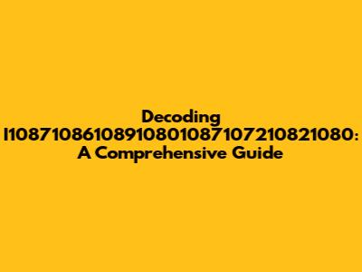 Decoding I10871086108910801087107210821080: A Comprehensive Guide