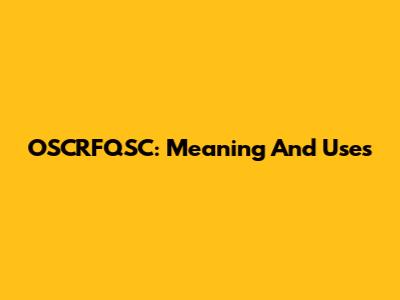 OSCRFQSC: Meaning And Uses