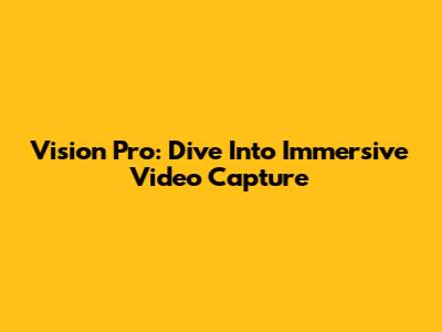 Vision Pro: Dive Into Immersive Video Capture