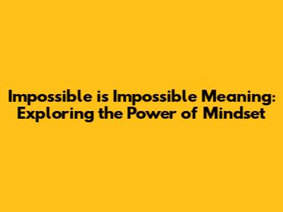Have you ever wondered about the true impossible is impossible meaning? It's more than just a catchy phrase; it's a powerful concept that delves into the depths of our beliefs and limitations. We often use the word "impossible" quite casually, but what if we challenged that notion? What if we started to believe that the impossible is, in fact, possible? This article will explore the depths of this concept, breaking down the psychology behind it and providing practical strategies to shift your mindset. We'll delve into real-life examples of people who have defied the odds, transforming the so-called impossible into remarkable achievements. Prepare to embark on a journey of self-discovery, where you'll unlock the potential to redefine your limits and embrace the power of possibility. So, buckle up and let's dive into the fascinating world where the impossible becomes, well, possible! Remember, guys, that changing your mindset isn't always easy, but the rewards of believing in yourself and your potential are immeasurable. Let's get started on this transformative adventure together!