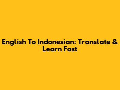 English To Indonesian: Translate & Learn Fast
