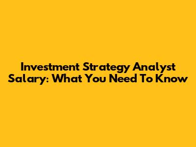Investment Strategy Analyst Salary: What You Need To Know