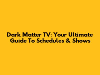 Dark Matter TV: Your Ultimate Guide To Schedules & Shows