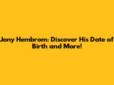 Jony Hembrom is a name that may not immediately ring a bell for everyone, but he could be a notable figure in a specific field, community, or region. To understand the importance of knowing his date of birth, it's essential to first establish who he is and why people are interested in him. He might be a prominent politician, a celebrated athlete, an influential artist, or a significant community leader. Knowing his area of expertise or contribution helps contextualize the interest in his personal details such as his birth date.