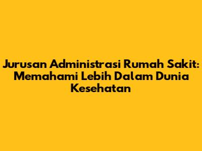 Jurusan administrasi rumah sakit adalah program studi yang fokus pada pengelolaan dan administrasi di fasilitas pelayanan kesehatan, terutama rumah sakit. Jurusan ini mempersiapkan kalian untuk menjadi profesional yang mampu mengelola berbagai aspek administratif, keuangan, dan operasional rumah sakit. Tujuannya adalah memastikan rumah sakit berjalan efisien, efektif, dan memberikan pelayanan terbaik kepada pasien. Jadi, kalau kalian ingin berkontribusi dalam dunia kesehatan tanpa harus menjadi dokter atau perawat, jurusan ini bisa menjadi jalan yang tepat.