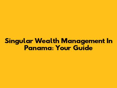 Singular Wealth Management In Panama: Your Guide