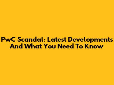 PwC Scandal: Latest Developments And What You Need To Know