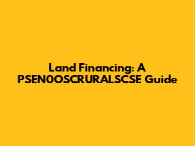 Hey guys! Ever wondered about diving into the world of PSEN0OSCRURALSCSE land financing? It sounds like a mouthful, but don't worry, we're going to break it down. Whether you're dreaming of building your own home, investing in rural land, or developing a commercial space, understanding land financing is super crucial. This guide will walk you through everything you need to know to navigate the sometimes-complicated process of securing funds for your land dreams.