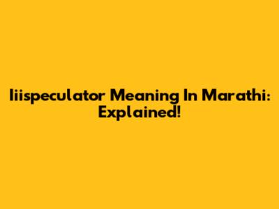 Iiispeculator Meaning In Marathi: Explained!