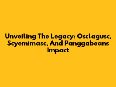 Unveiling The Legacy: Osclagusc, Scyemimasc, And Panggabean's Impact