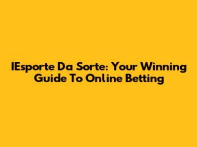 IEsporte Da Sorte: Your Winning Guide To Online Betting