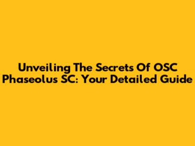 Unveiling The Secrets Of OSC Phaseolus SC: Your Detailed Guide