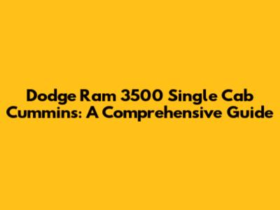Dodge Ram 3500 Single Cab Cummins: A Comprehensive Guide
